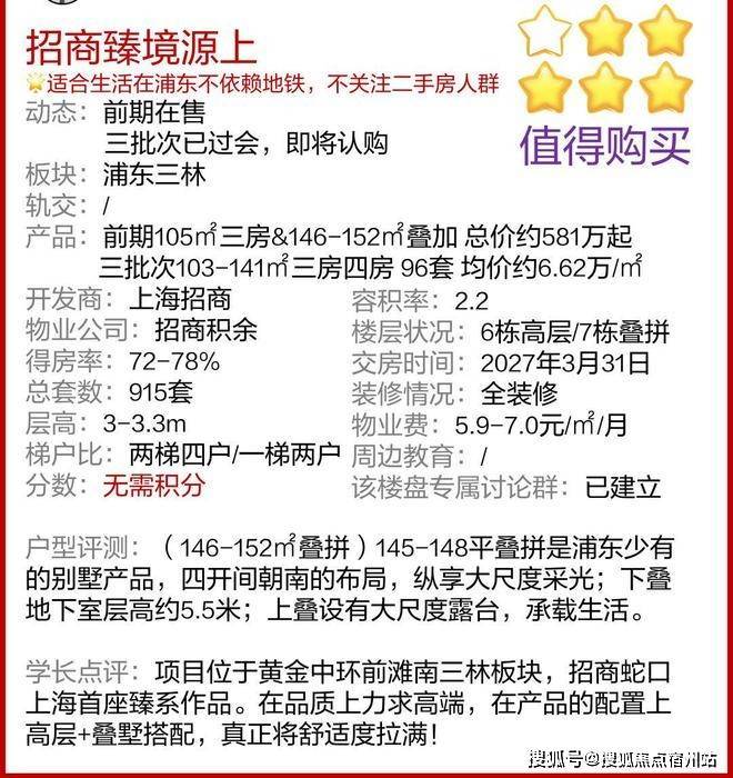 最新消息:浦东三林「招商臻境源上」三批次已过会,即将认购!建面约103-141㎡三房四房,均价约6.62万/㎡!