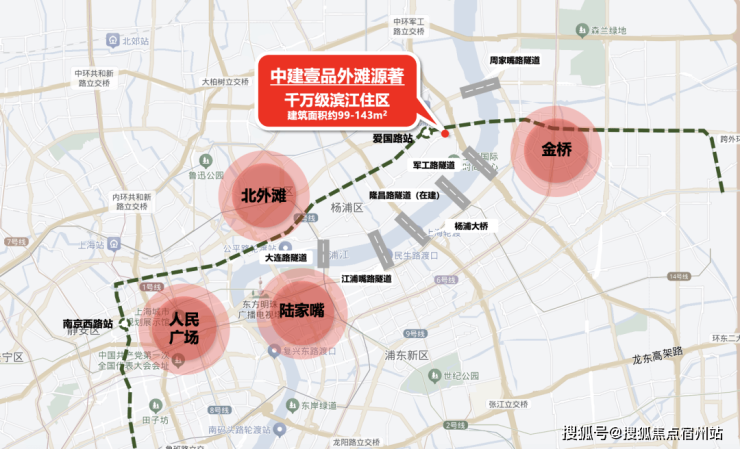 通过12号线,可畅达北外滩、南京西路、人民广场等核心CBD。同时,这里对于浦东客户来说非常的友好,因为有5条隧道、2条道路可以通达。