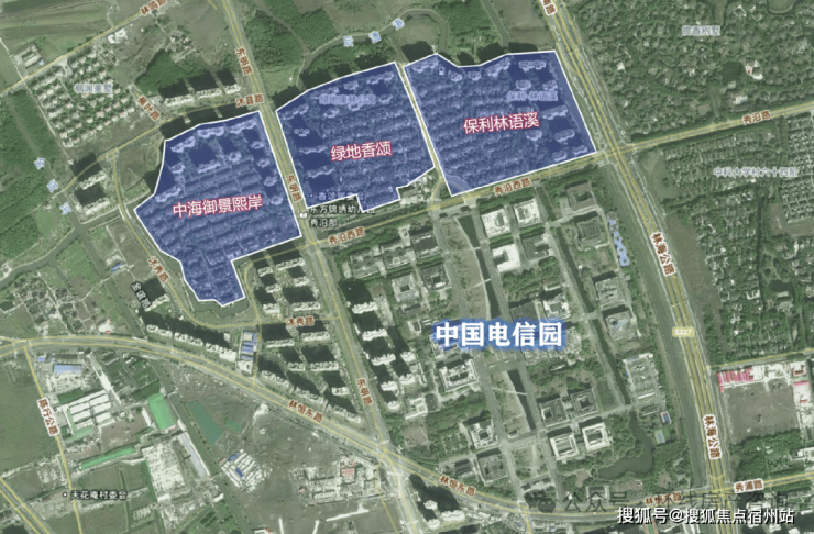 电信三兄弟指的是浦东林海公路边的保利林语溪、绿地香颂、中海御景熙岸三个小区;