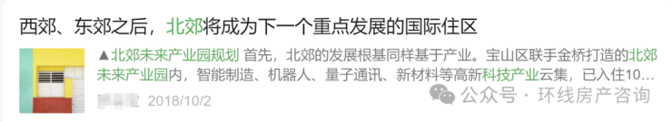 相应的,营销宣传附近的住宅区就是下一个能媲美东郊西郊的“北郊国际社区”: