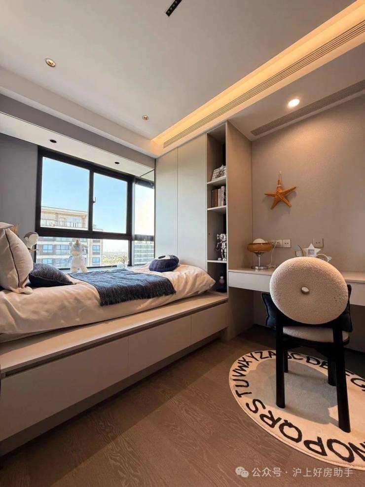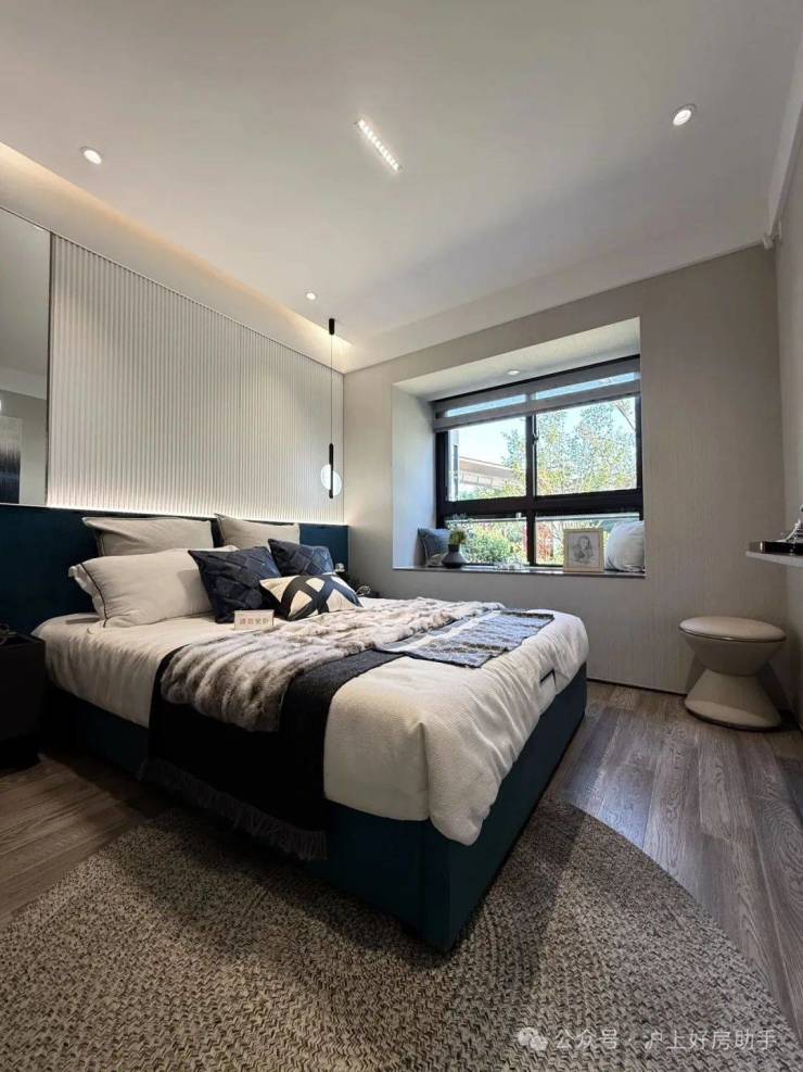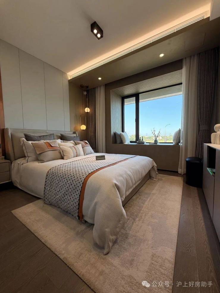 双套房设计,主卧带卫生间+衣帽间,次卧带衣帽间+飘窗,让两代家庭都能拥有自己的私密空间。