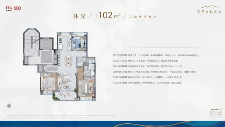 所以,虽然户型的建筑面积是约102㎡的3房,但整个空间的尺度感却能匹配改善型的宽绰3房。☑️☑️国贸海屿佘山售楼处电话:400-1183-605☑️☑️