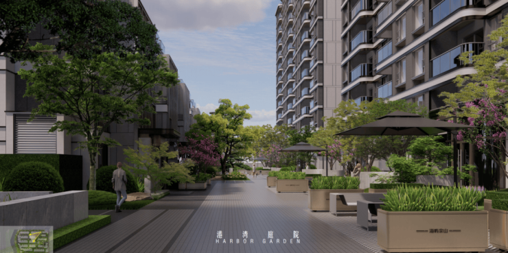 景观方面,海屿佘山项目营造的是酒店美学之下的度假感社区。