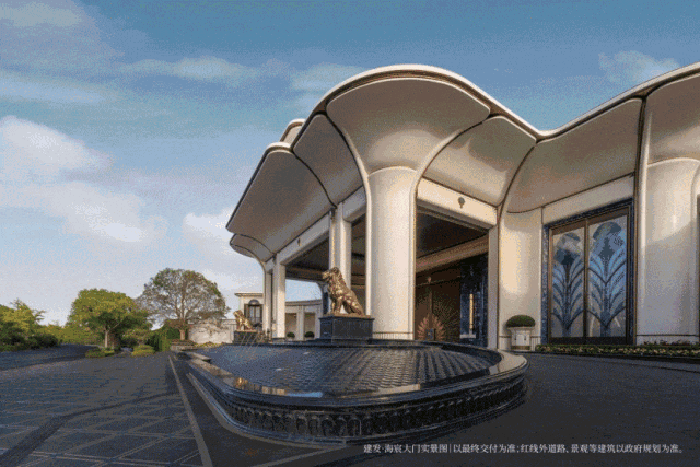以玉兰门庭—迎归大堂—莳花荟为主轴,敬献步履生辉的归家艺旅:玉兰门庭如繁花盛绽,尊华瑞鳞水景聚运生财,双尊铜狮镇守家宅;迎归大堂流转光影艺韵,百羽栖澜艺术雕塑、芦海宸韵非遗绣作流淌摩登气韵;莳花荟中央会客厅移步异景,献映会客、休闲等雅会。