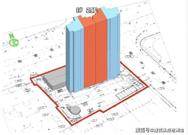 根据设计方案显示,项目拟建1栋总高29F住宅楼,以及1栋1F商业+1栋居委会+老年活动室等社区配套。