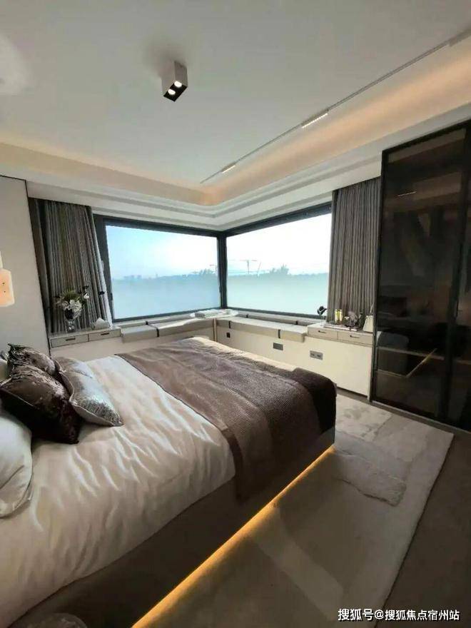 卧室也使用了转角飘窗,可以在飘窗上打储物柜,✅✅绿城上海逸庐售楼处电话:400 - 8824 - 258✅✅提高收纳功能。