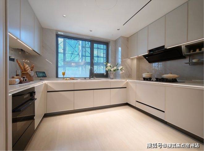 厨房的北侧台面全部都采用了飘窗,✅✅绿城上海逸庐售楼处电话:400 - 8824 - 258✅✅并且在飘窗上假设了定制尺寸的大单槽,非常实用。