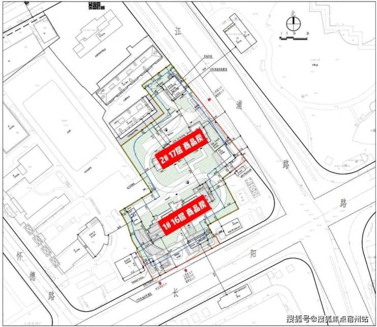 人行出入口、车行出入口、消防出入口,设置在南侧长阳路上,并设置1个临时上下客停车位;西侧江浦路设置人行出入口兼顾消防出入口