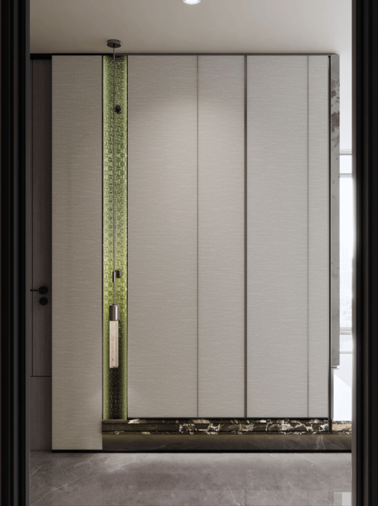 约150㎡4房2卫户型类一梯一户的居住体验,业主能独享一整个电梯厅,加上入户玄关的配置,私密性相当高。