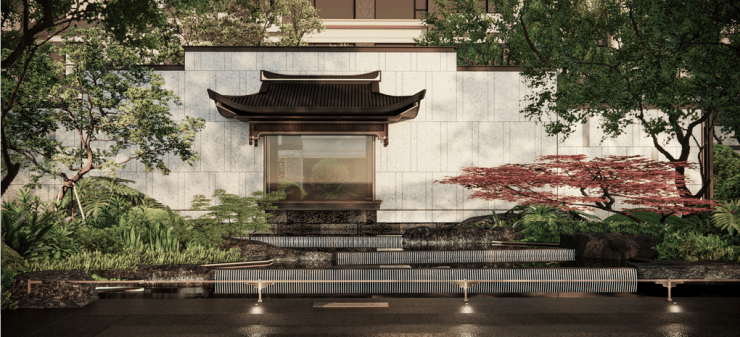 此次保利丨 建发·印象青城的设计,开创性的提出了 “现代形东方意”的核心概念,着实让青浦高净值客群眼前一亮。“如鸟斯革,如翚斯飞。”项目屋顶汲取飞檐经典意向,结合现代精细构造化繁为简,去形留意,若举高之势青云而上,气度非凡。