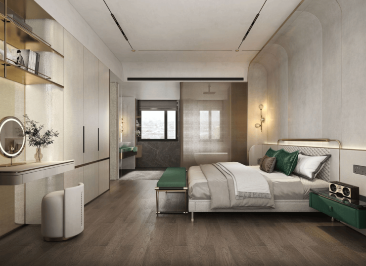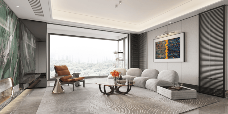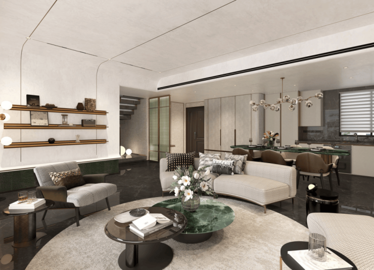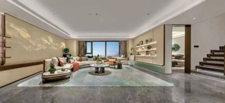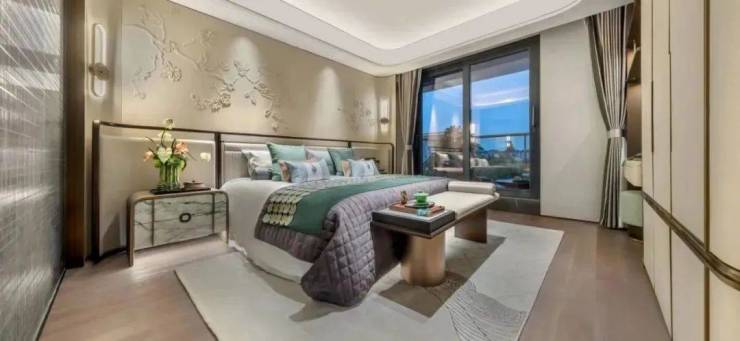 立面腰线等细节处则提炼汝窑 “金线”传奇符号,以还原精雅的繁复工艺,为建筑线条进行金线勾边,点睛强烈而隽永的美学仪式感;较高的窗墙比延伸视野边界的同时,呈现极简派超高颜值…诸如此类的精工细节不胜枚举,真正做到了坚持骨子里东方文化标签,用现代材料与传统技法相结合,打造出符合现代审美需求的高质人居产品。