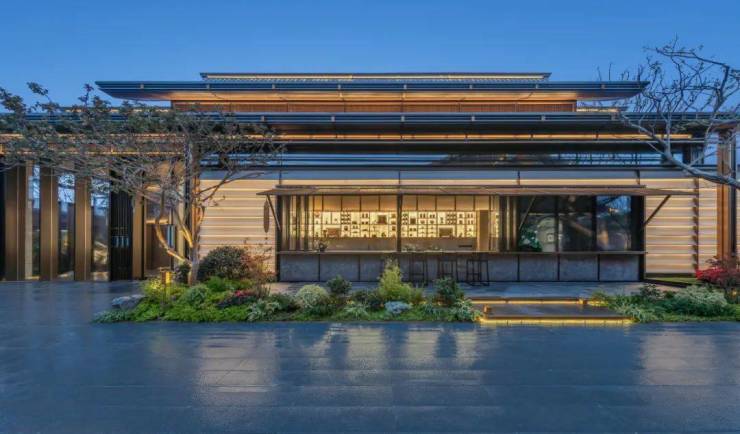 实景图二进青雅叙:青雅叙是销售阶段的售楼处,也是小区未来的会所。整个会所建筑屋身层层飞檐、基座漂浮架空,巨幕玻璃立面,非常飘逸灵动。