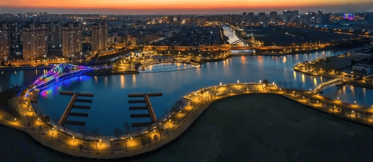落日时可挽着爱人,一边漫步湖畔遛娃遛狗,一边看天边余霞成绮,湖中碎光点点。