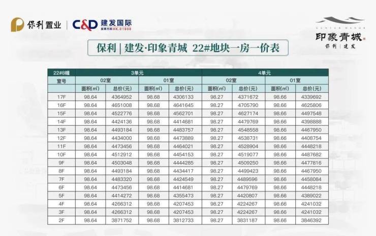 项目一房一价表▼