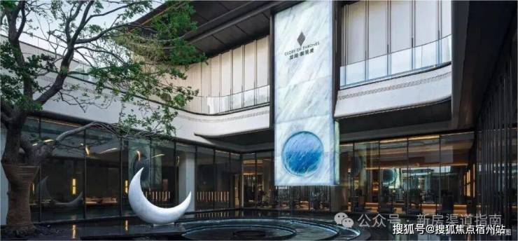 极致考究的「琉璃光院」,从时间中淬炼而出,标志性汉白玉玄月族徽,与高10米的蓝水晶奢石光幕,显赫“日月同辉”之境。近50年乌桕树王矗立,搭配「宇宙之心」漩涡水景,动静相宜,恍如纳藏宇宙生息的力量。