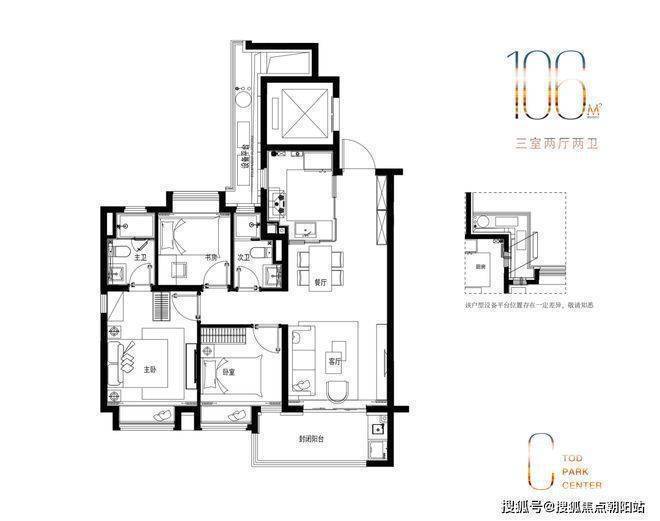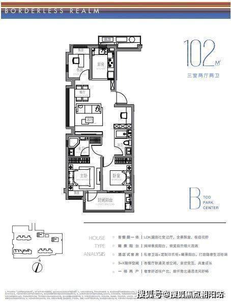 建面约102m²户型:LDK洄游式景观边厅,景致拉满3+X陪伴空间,承载更多自定义功能需求开放式厨房,烹饪与客餐厅无界互动完美满足3房居住功能的同时,光合跃城还在客厅额外增加了 0.5个灵动空间,业主可以自由定义这个空间,绝对是增光添彩的设计!!建面约106㎡C户型▼