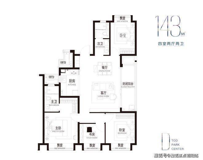 「」建面约106㎡3房:无连廊,高得房率!相比市面上普遍带连廊的高层产品,项目建面约106㎡新品户型全系无连廊,采光更通透,隐私性更佳,得房率超高!客餐厅一体化+开放式厨房+大尺度观景阳台,整个公区几乎没有面积浪费,营造的空间感和尺度感远超同价位其他竞品;主卧大套房贯穿南北, 自带衣帽间+卫生间+飘窗,气度非凡。建面约143㎡D户型▼
