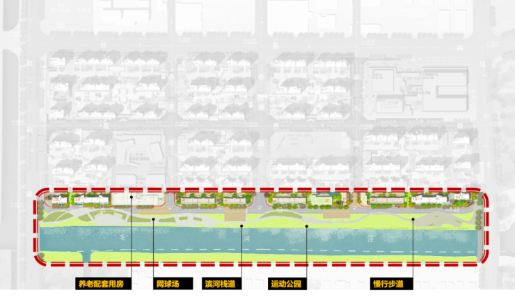 一界面:网球场、运动公园、沿河栈道、漫行步道,滨水公园成为私家后花园