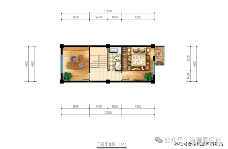 内部层高:一楼4.2米、二楼3.3米、三楼3.3米、阁楼3米。