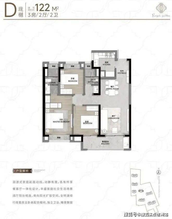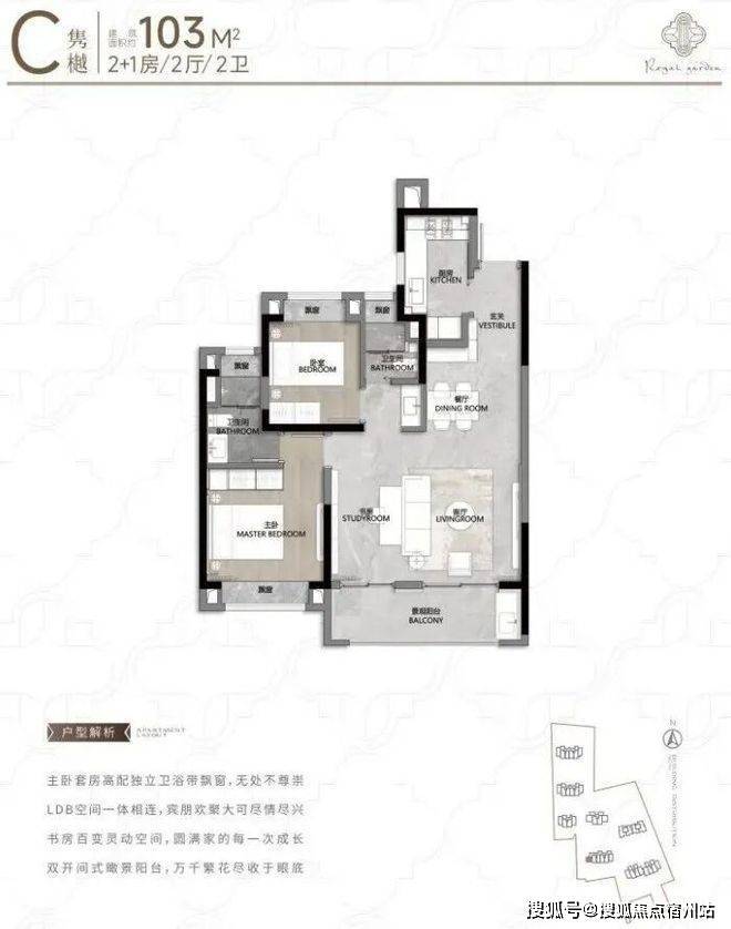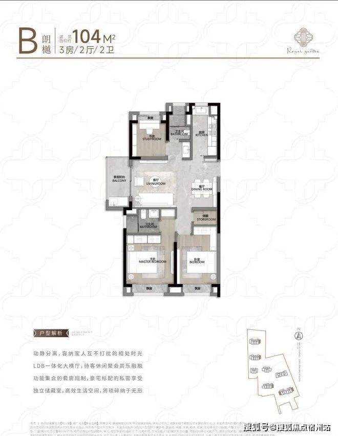 动静分离+客餐厅一体化设计,功能区和休息区互不干扰,客餐厅、厨房等公共活动区集中在一侧,卧室等休息区全部一侧,保证了私密性!