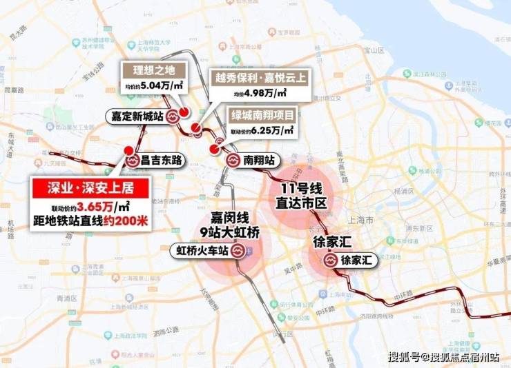 价格优势:项目 联动价3.65万/㎡,向前2站的嘉定新城项目价格在5.04万/㎡,仅是多坐几站轨交,价格就大幅度回落,价值不言而喻。