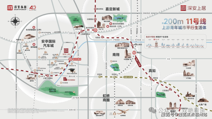 项目未来还可以在南翔站无缝换乘嘉闵线(在建中),4站即达虹桥火车站,出行非常方便! 上海2035规划中的 宝嘉线、嘉青松线 即将启动,嘉安高速延展嘉定向东与宝山互通,以安亭为枢纽核心,嘉定安亭再次站在了时代发展的风口之上。