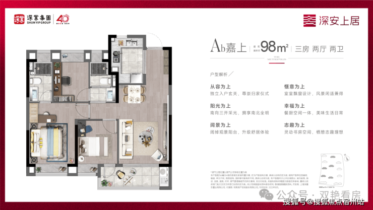 现在深业·深安上居建面约88㎡户型就实现3房功能性,建面约98㎡3房户型更实现主卧套房设计!既满足市场主流需求,又带来进阶改善品质。