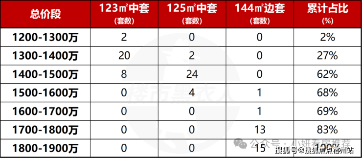 把上车门槛和改善天花板摆出来,你会更容易对号入座:门槛看123㎡,天花板看144㎡,中间用125㎡做参照。很多人纠结的根源不是“选不出来”,而是没有先把自己放进正确的价格区间里去看房。从总价段分布看,这批的可选空间其实不小,特别是123㎡中间套主导的预算区间(1240-1450万)。因为这段价格带既集中,又能挑楼层,还能把“中间套+高区”的组合打出来,形成体验和价格的双重优势。