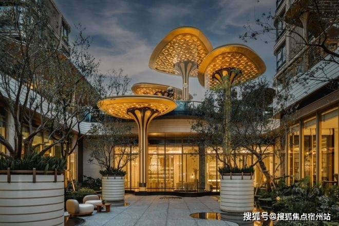 莫奈花园会所的下沉式庭院设计,由“气泡花园”、“森之庭院”、“光影连廊”、“铝板立面” 构成了全新的景观体系,通过巧妙的室内外和垂直上的空间联动进行统一的动线规划造景,营造出丰富的园林空间体验感。