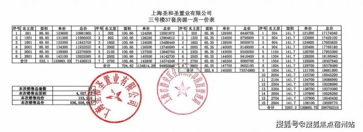 一房一价表