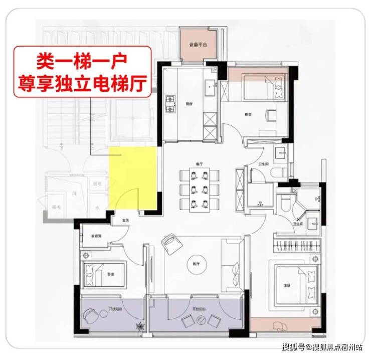 而时代雲境的类一梯一户设计,为每户预留了独立的电梯厅。