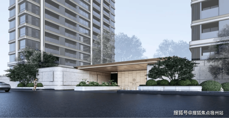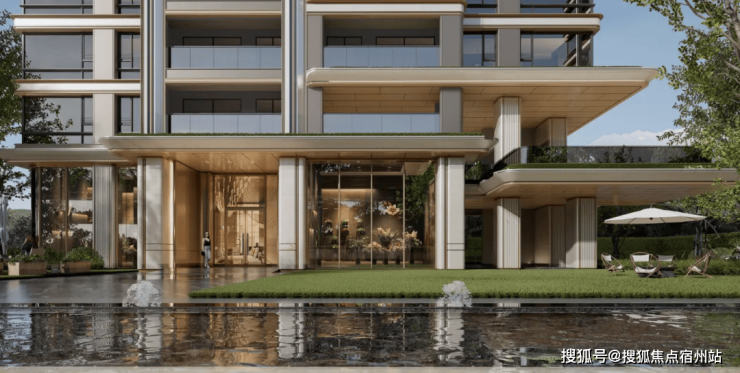 保利江上印摒弃传统住宅厚重呆板的设计,采用 现代轻盈微弧美学立面 ,以流畅的曲线线条、通透的玻璃幕墙与质感石材结合,打造极具辨识度的建筑形态,在滨江天际线中脱颖而出,既契合现代高端审美,又彰显业主身份格调。