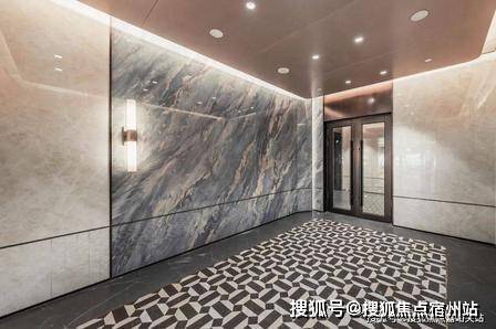 社区大门 :双精装入户大堂,搭配罗汉松造景、星空顶门堂,蓝翡翠奢石接待台,尽显尊崇。