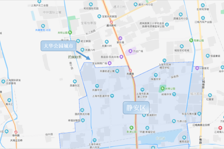 从地图上看,该地块距离静安区的直线距离只有800米,距离大宁核心区域仅约5公里,不仅离大宁国际商圈近,周边还有宝山万达、大华商圈等大型商业配套。