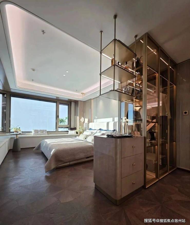 而在主卧区域,建发也将大量赠送的飘窗窗台做低,可以放置收纳,成为女士的化妆台,以及夫妻松弛畅聊的沙发卡座。