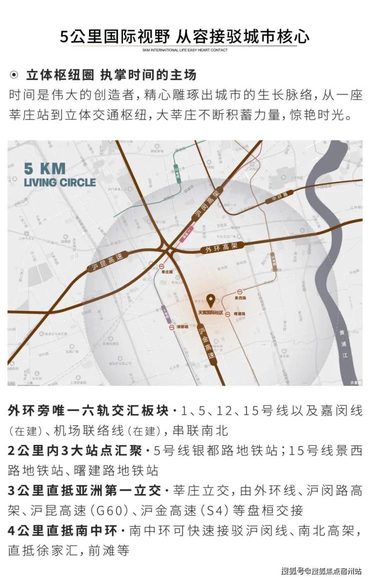 交通:周边有地铁15号线, 坐享“三纵两横三轨”立体交通路网,三纵——沪金高速、虹梅高速、嘉闵高架,串联繁华城心;两横——外环高速、申嘉湖高速,通达沪上走廊;三轨——1号线、5号线、15号线接驳全城区域。