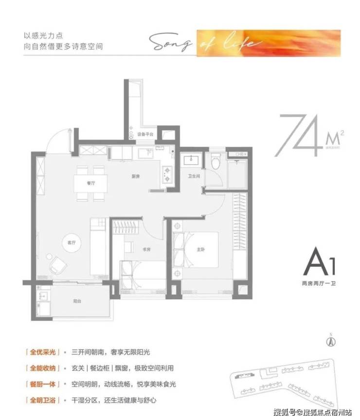 建面约74㎡2房1卫,预计总价约231万起;