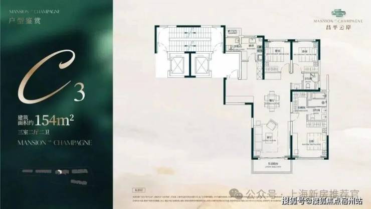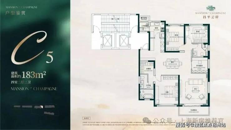 此户型最靠近苏州河,特地设计了 270度转角阳台 直面苏河一线景观!4个套房设计,尊崇感十足!此户型仅有6套,珍藏属性拉满!