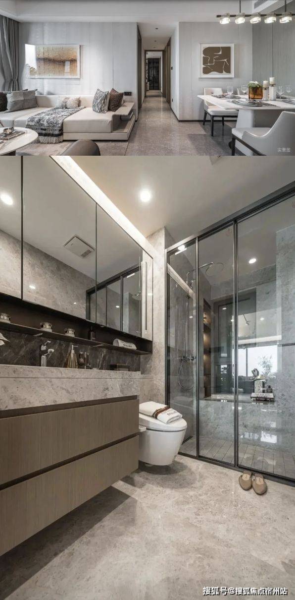 所有户型全屋墙纸交付,✅✅中环云悦府售楼处电话:400 - 8824 - 258✅✅连电视机背景墙岩板以及主卧背景墙都是交付标准,卫生间甄选不同的石材,以此来满足功能区的需求。