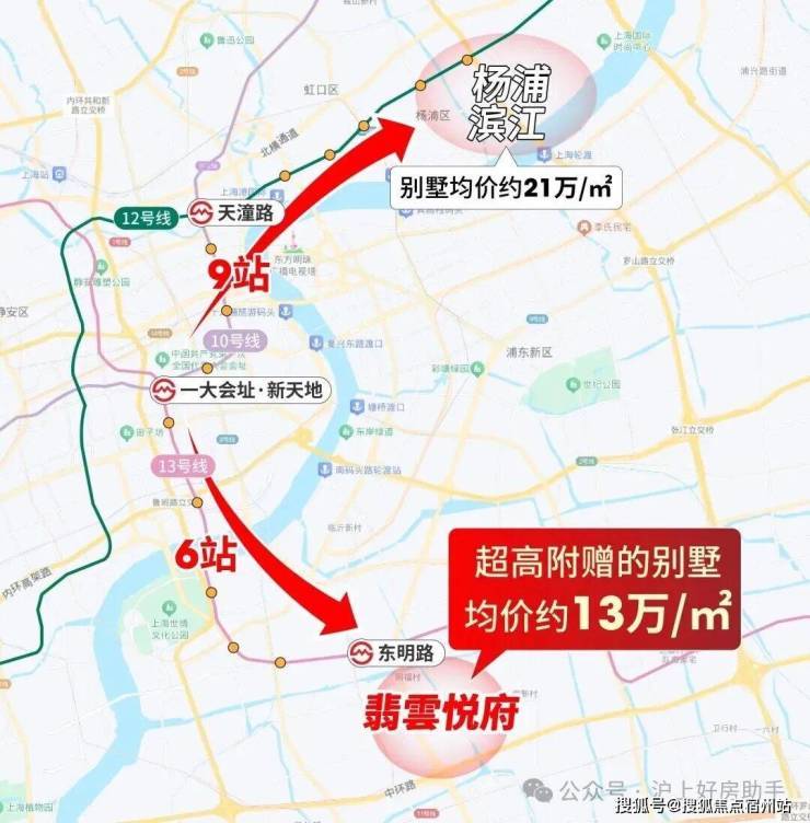 更别说浦西了,距离新天地9站的杨浦滨江别墅新房均价约21万/㎡。