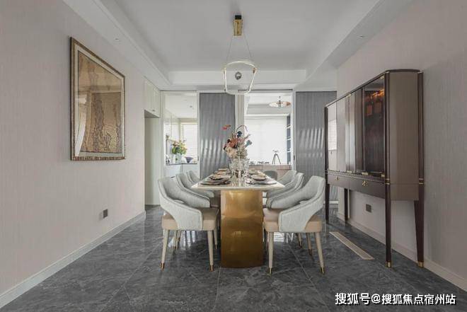 餐厅右侧的凹槽空间,可以作为冰箱、柜体等安置点或储物空间,更方便日常收纳。