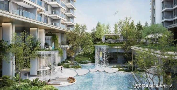 摒弃常规项目的平面化绿化,西派云间以“折叠手法” 打造立体叠瀑森屿。约10米高差的坡地之上,水流从云端倾泻而下,形成层次分明的叠瀑景观;