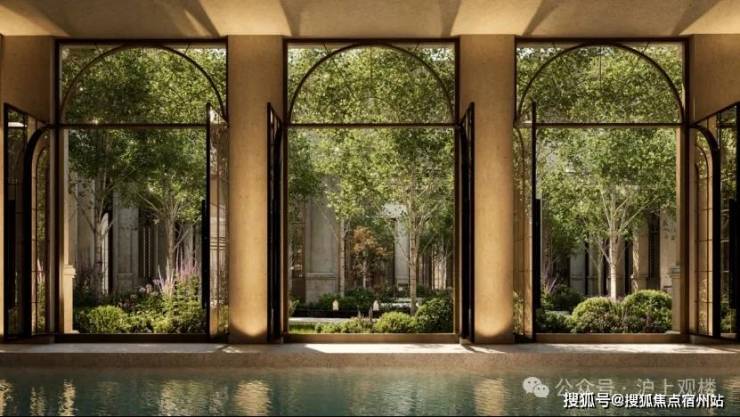 NO.8 花园泳池 波光潋滟处,拱形门窗外花影摇曳,一池春水将四季芳菲溶成流动的油画。