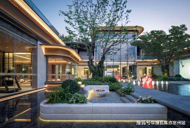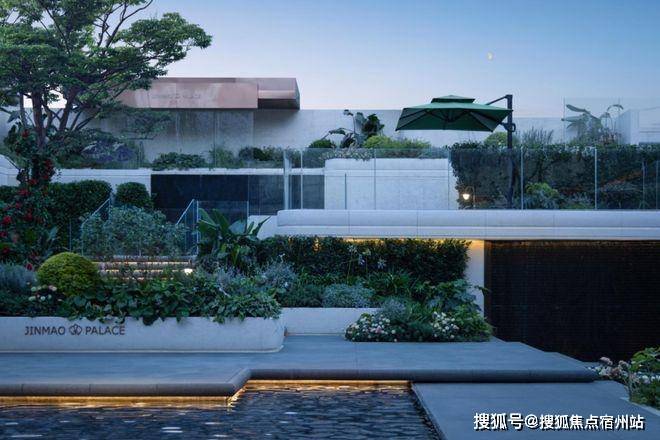蓝翡翠水景围着下沉庭院,中间有蜿蜒的挑台连着瀑布,✅✅江湾金茂府售楼处电话:400 - 8824 - 258✅✅顶层还有供业主小聚的女王花厅,实现了美感与功能的完美融合
