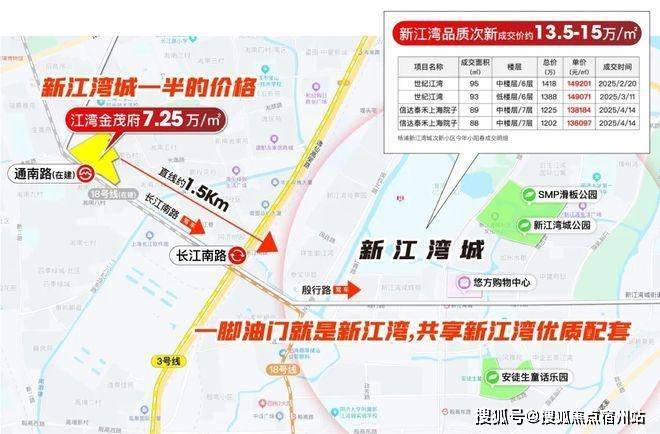 江湾金茂府直线距离新江湾仅约1.5公里,✅✅江湾金茂府售楼处电话:400 - 8824 - 258✅✅一脚油门或一站地铁就可以同频高阶成熟生活配套!
