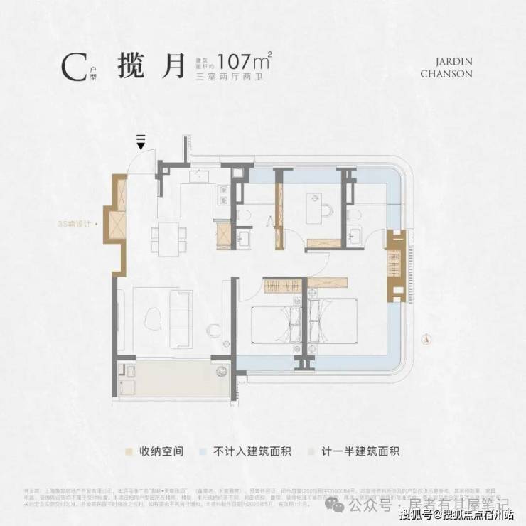 约107㎡边户全屋设计了5个飘窗,而139㎡户型的飘窗总体线长约23m,还不算阳台。飘窗面积折合下来,就是约15平米的赠送面积,价值小100万!