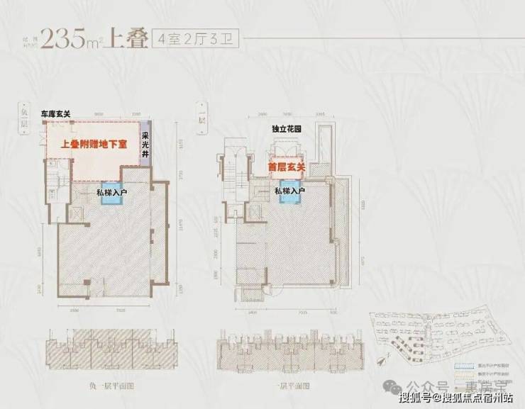 首先,上叠是北向 私享入户花园,独门独户,室内私家电梯 ,尊崇感与私密性都有保障。