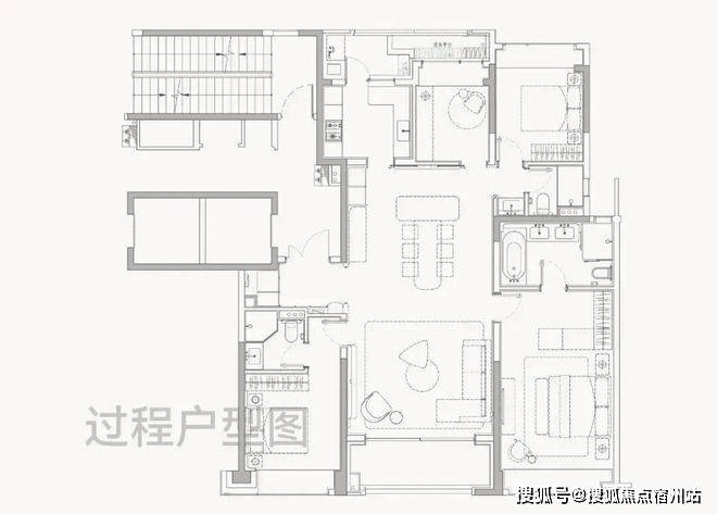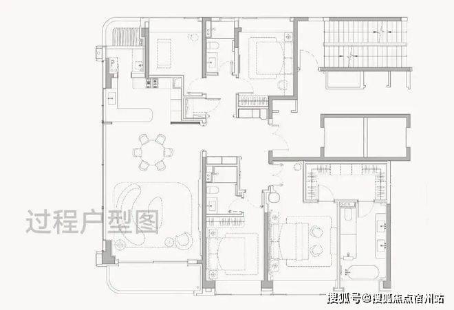 独立私梯入户,配合玄关与储物系统,功能与仪式感兼备。整个格局的智慧,淋漓尽致地体现在南向双套房与北向类套房的分散式布局上,宛如三个自成天地的静区,分布于不同方位,确保家人之间的高度私密,互不干扰——这,才是高品质家庭生活的真正内核。