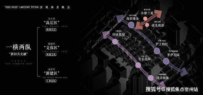 八处饱含故事的园林景观,如同八首写给城市的情诗,沿着"一横两纵"的轴线徐徐展开。这些场景不再是静止的绿化,而是串联高层、文保别墅与海派别墅的时光纽带,构成一部可以漫步、可以聆听、可以与之对话的立体历史长卷。