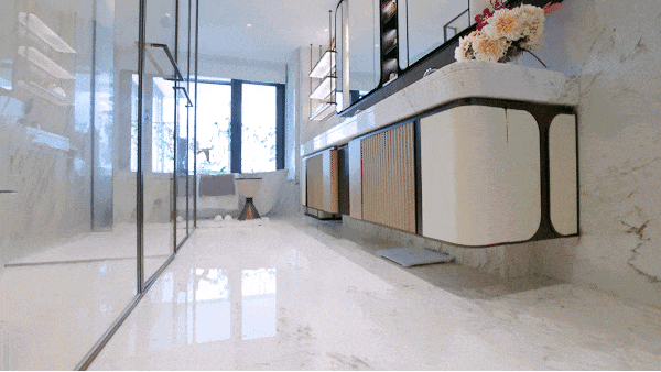 伯爵白大理石横竖拼花、古驰白冰裂纹地粮北外滩壹号售楼处电话:400-833-6309【官网】面、镜湖春晓山水纹台面,石材的呼吸感让空间有了流动的生命力。每一块石头都拥有自己的名字和故事,它们不仅是装饰,更是空间的情绪与表情。